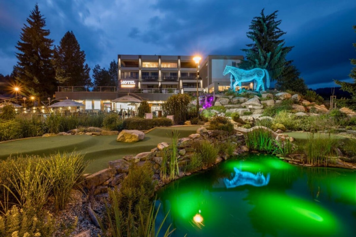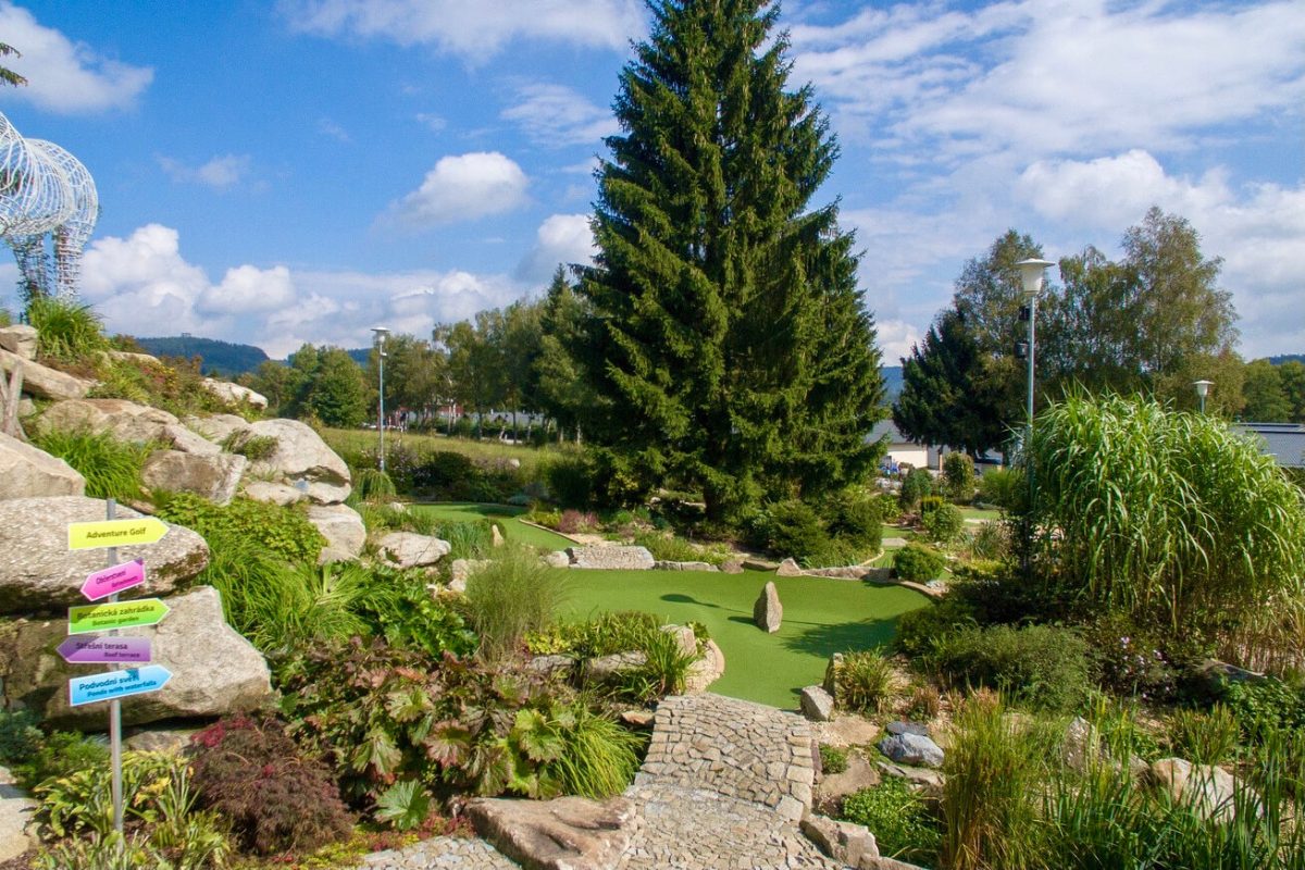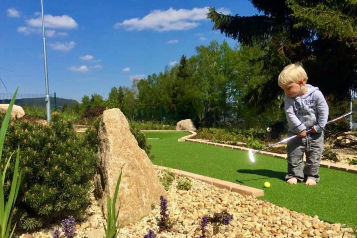 Přemýšlíte, co podniknout s dětmi na Lipně? Až se vám nebude chtít na celodenní výlet, zamiřte k místnímu Adventure golfu. Je jen pár kroků odhotelu Star Lipnoa v areálu funspotu Lipno si můžete i užítklidné posezení u občerstvení.Zábava pro rodiny s dětmi ve dne i v nociČeká vás tu 18 jamek, na kterýchporovnáte své golfové umění. Tak schválně, kdo z vás bude nejlepší?Hra není fyzicky náročná, a tak si klidně můžete dát hned dvě za sebou. A když se vašim dětem nebude chtít večer spát, užijte sipoklidnou noční hru za zvuků příjemné hudbya holografické projekce.Pár her Adventure golfu sice na celý den nevystačí, aleLipno je plné aktivit pro rodiny s dětmi, tak neváhejte a naplánujte si vícedenní výlet avyberte si z ubytování pro rodiny s dětmi z naší nabídky.celý popis aktivityskrýt popis
