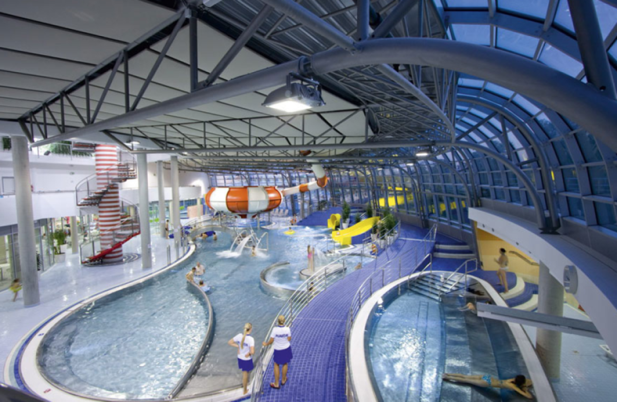 Doolomouckého aquaparkuse mohou vypravit milovníci vodních radovánek. Návštěvníkům je k dispozici celkovávodní plocha 1200 m², z toho polovina v zastřešené části.Vnitřní částzahrnuje také adrenalinovýspace-bowla součástí bazénů je spousta tradičních vodních atrakcí včetněproudového kanálu,vodního děla, chrličů a různýchmasážních trysek.Pro děti do12 letje k dispozicipestrobarevná lezecká stěnas vodní tématikou,zábavní herní panely, herní konstrukce a další zajímavosti. V bezprostřední blízkosti jsou imístnost s přebalovacím pultem a WC.
