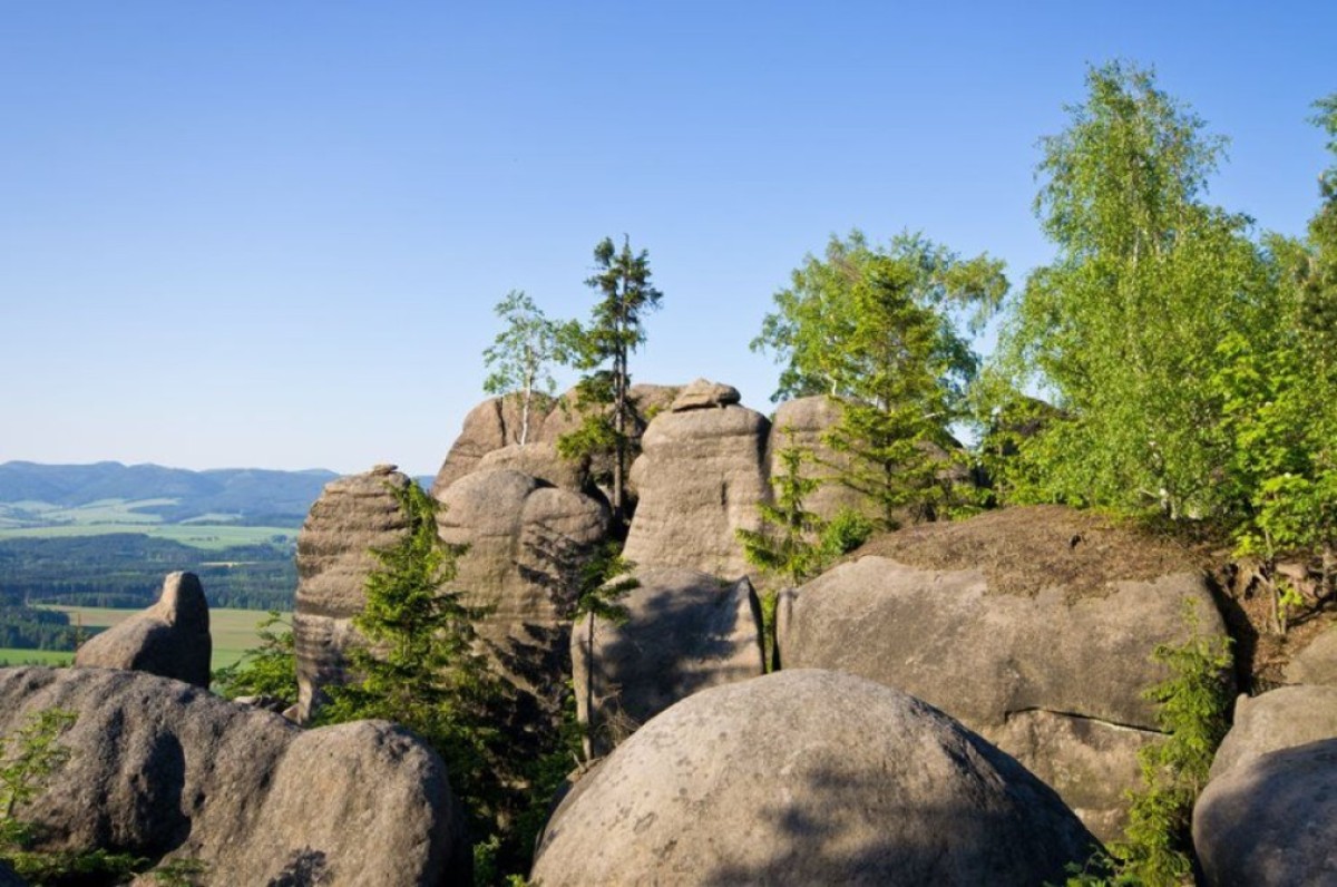 Téměřpanenská přírodanabízí romantické skalní útvary, rokle, vyhlídky daleko do kraje. Turisty zapomenutá přírodní rezervace uchvátí každého návštěvníka.Chráněná krajinná oblast Broumovskose rozprostírá na ploše 410 km², převážnou část tohoto území vytyčují státní hranice s Polskem.Broumovské stěnyse zvedají v Broumovské vrchoviněmezi městy Police nad Metují a Broumova jsou oblíbeny díky svým skalním útvarům, roklím, vyhlídkám a klidu.
