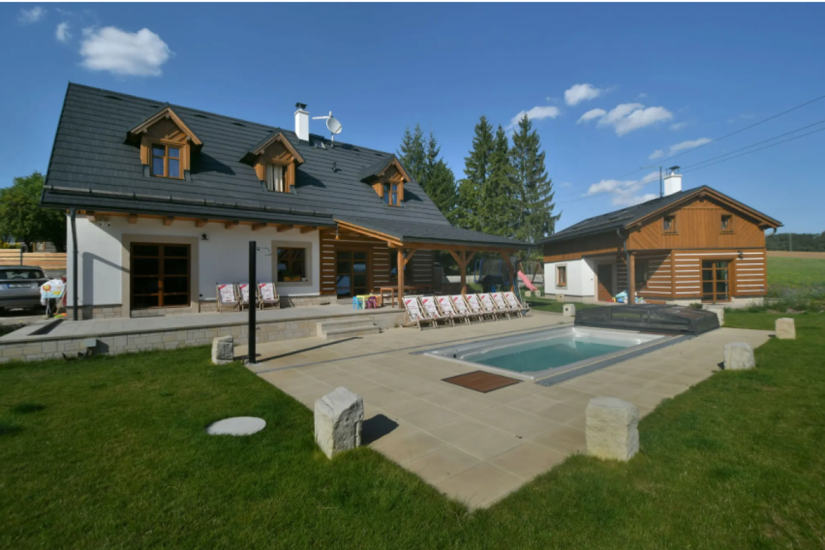 V celém objektu je dostupné Wi-Fi připojení. Venkovní prostor nabízí vyhřívaný bazén s protiproudem (k dispozici od dubna do září), terasu s grilem a dětské hřiště s houpačkou, skluzavkou a trampolínou. Parkování je zajištěno na oploceném pozemku u chalupy.