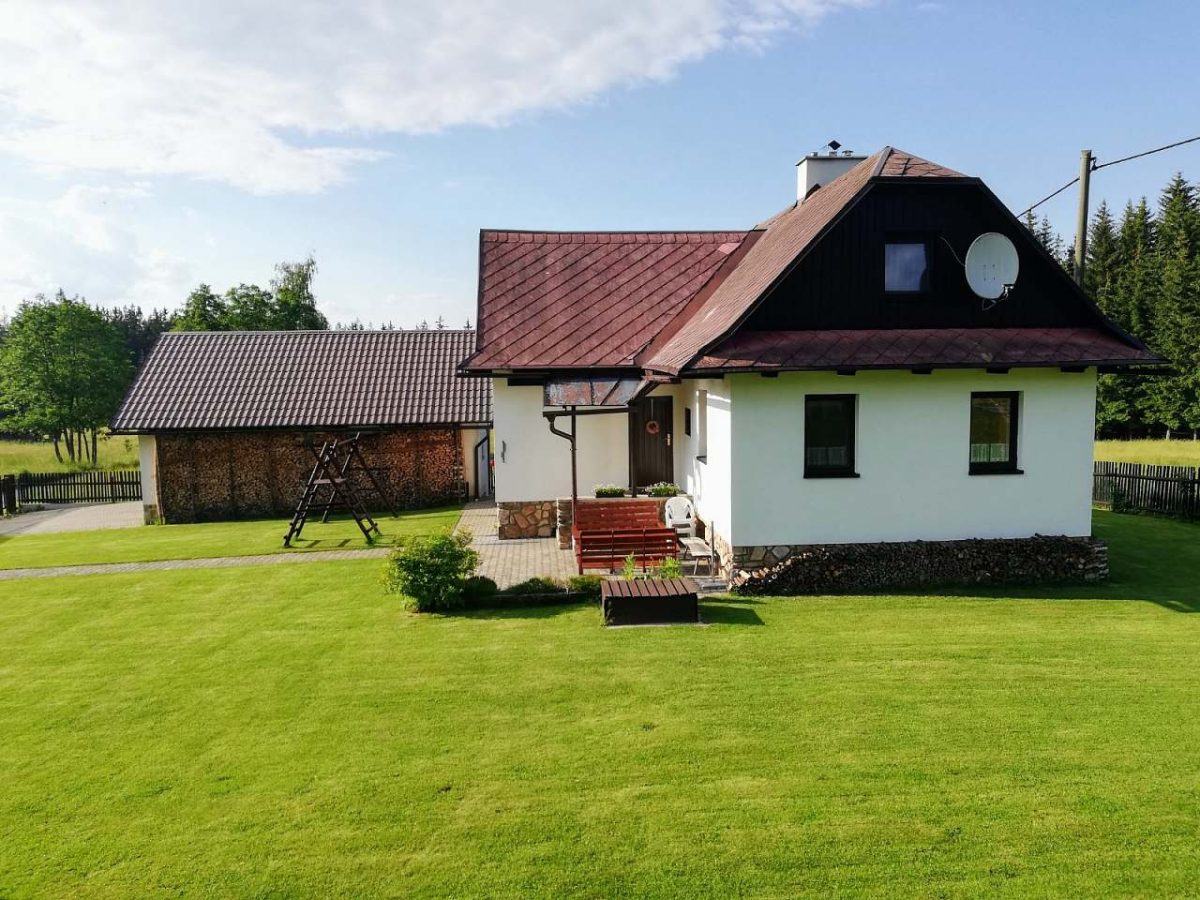 Domek se umístěn na periferii města Svratka. K nemovitosti vede přístupová silnice. Dům má dvě patra. V přízemí se nachází prostorný obývací prostor s integrovanou kuchyní. Místnost je vybavena kachlovými kamny, jídelním stolem pro 10 lidí, pohovkou a televizí s příjmem satelitních programů.