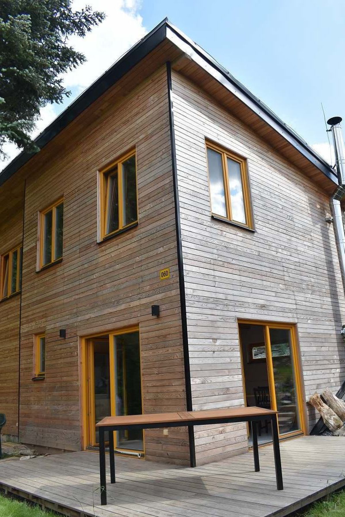 V chatě najdete prostorný obývací pokoj, který je vybaven krbovými kamny a je propojen s kuchyní a jídelním koutem. Kuchyně je plně vybavena vším potřebným, včetně elektrického sporáku, lednice, mikrovlnné trouby a kávovaru, což vám umožní snadno si připravit vaše pokrmy. K dispozici jsou dva samostatné pokoje, které nabízejí pohodlné lůžkové vybavení. Koupelna je vybavena vanou a je zde i samostatné WC.