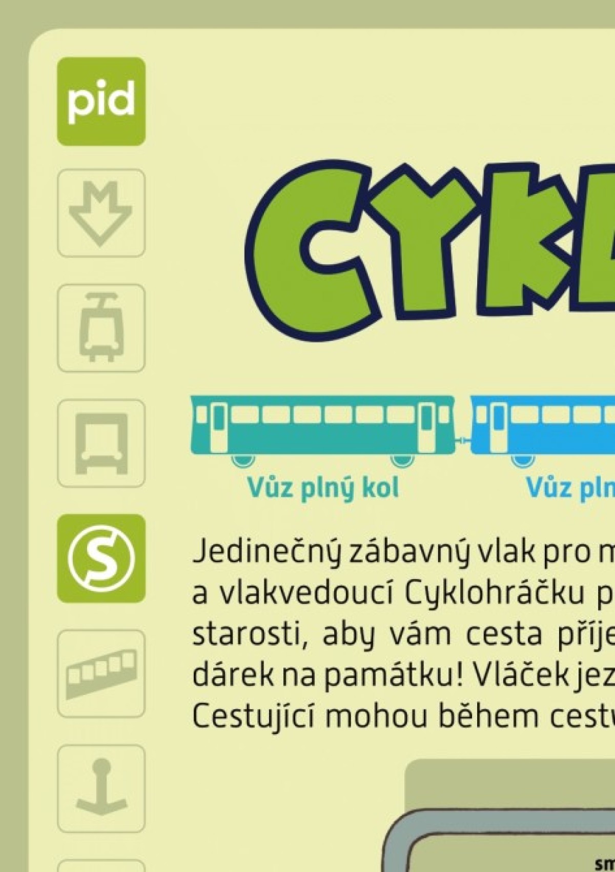 Vydejte se s dětmi vláčkem za pořádnýmdobrodružstvím. V tomto vláčku je kromě Strojvedoucího takéHrajvedoucí.Ten vám poradí s výběrem společenských her, vysvětlí pravidla různých dětských aktivit nebo vám dá tip na výlet.Výlet vlakem s dětmiVlak JE speciálně upravený prorodiny s dětmi. Najdete tu vagon pro kola, kočárky pro Nebobazén s míčky, ve kterém si mohou hrát Vaše nejmenší ratolesti. Pro starší jsou zde speciálně upravené stolky, na které můžou hrát Člověče, nezlob se.Pro menší je také připravena spousta stavebnic,vláčkové skládačky, vláčkodráha s mašinkou a knížky.Vlak pro dětiJízdu Cyklohráčkem si můžete užít každou sobotu, neděli nebo ve státní svátek.Nástupní staniceje na hlavním nádraží v Praze. Svezete se po nejhezčí pražské železniční trati, tzv. Pražském Semmeringu, přes Jinonice, Cibulku a Zličín do středočeské Hostivice. Odtud vláček pokračuje kolem hradu Okoř a Zákolanským údolím až do konečné stanice Slaný. Cyklohráček během sezóny navíc několikrát zavítá i do Zlonic, kde se nedaleko nádraží nachází železniční muzeum. Vydejte s rodinou i na jiné superaktivity pro děti.Řazení CyklohráčkuVůz plný hraček – ten oranžový.Sem můžete pohodlně nastoupit s kočárky a čeká vás tu spousta překvapení – stanoviště strojvedoucího přestavěné na dětskou hernu, houpací pytel, dřevěná vláčkodráha s mašinkami, pestrobarevná stavebnice, motorické kostky, dřevěné hry na stěnách.Vůz plný balónků – ten růžový.Velké pestrobarevné balónkoviště se skluzavkou, velká molitanová stavebnice, dřevěné hry na stěnách a také houpací pytel tu čekají na děti. Koumavější děti si tu mohou zahrát deskové hry, figurky jim zapůjčí hrajvedoucí.Vůz plný her – ten modrý.V tomto voze najdete další balónkoviště, tabuli na kreslení s barevnými křídami, dva stolečky na kreslení pro malé cestující a knihovničku pro malé čtenáře.Vůz plný kol – ten tyrkysový.Tento vůz je plně připraven pro cyklisty, sem můžete na cestu uložit kola. Máte tu i kompresor na huštění pneumatik, sadu lepení a základní nářadí pro opravu kola, v neposlední řadě je zde umístěn ČD Minibar se základním sortimentem občerstvení.V Cyklohráčku neplatí žádné speciální jízdné, platí zde tarif ČD, PID případně OneTicket.celý popis aktivityskrýt popis