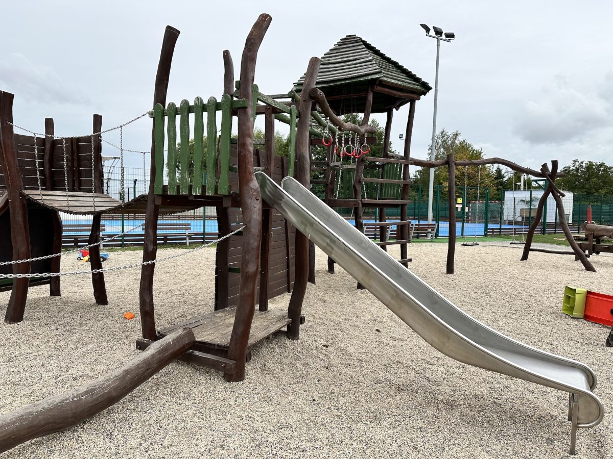 U opravdu velkého sportovního areálu najdete stejně velké dětské hřiště, kde se děti určitě zabaví. najdete zde klasické pískoviště, prolézačky, kolotoč, nebo třeba dřevěné houpačky v různých tvarech. Šplhadla a prolézačky jsou navíc šikovně rozmístěny po celém areálu, takže děti můžou přebíhat a brzy je tak nezačnou nudit.Velmi šikovná je i běžecká draha, která se stáčí kolem celého hřiště. Sportovnější děti si tedy zaběhají, nebo i zasoutěží.Hřiště není sice oplocené, ale nachází se na konci slepé ulice, kde auto nepotkáte. Dál už jsou pak jen sportovní hřiště a pole, takže se o bezpečí skutečně bát nemusíte.Hřiště nabízí posezení pro dospělé, které je šikovně kryto proti slunci. Vybrané atrakce jsou také v blízkosti stromů, takže o stín nouze skutečně není. Přímo na hřišti je pak občerstvení, kterého provozní doba je ale pouze o víkendu a později odpoledne. Svačinku tedy raději s sebou.Co je opravdu skvělé je přítomnost toalet, které jsou obvykle velmi čisté a přístupné po celou dobu a zcela bez poplatku.Při návštěvě rozhodně zavítejte i k blízkému rybníku, který je rekonstruovaný a pečlivě osázený květy. I když jste v stále v Říčanech, pocit pravé středočeské vesničky si zde skutečně vychutnáte.celý popis aktivityskrýt popis