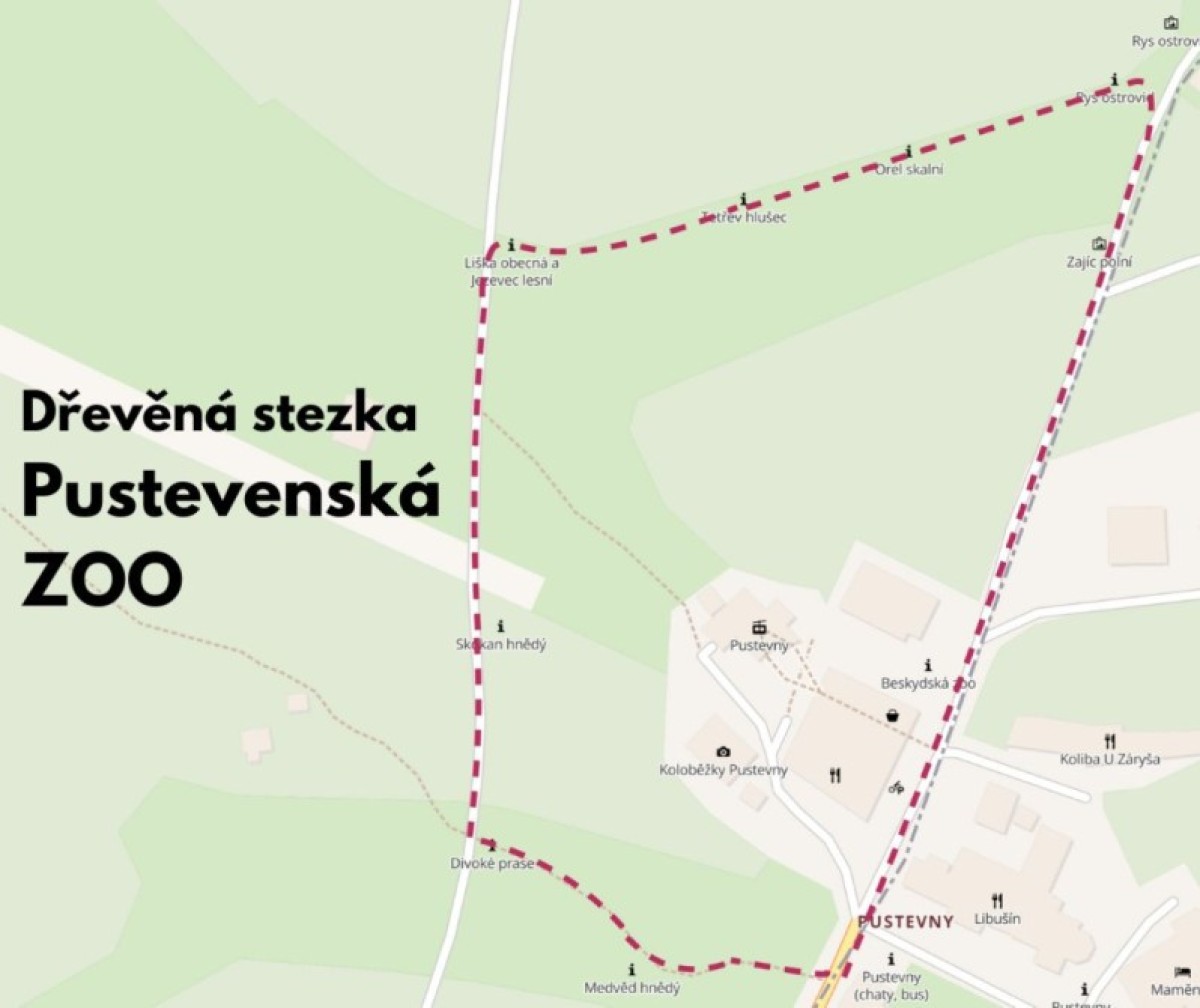 Pokud jste s dětmi nedaleko od Pusteven, měli byste s nimi vyrazit na krásnou naučnou stezku o délce 1,5 km. Je nenáročná, a proto si ji užijí i rodiče s menšími dětmi. Na jednotlivých stanovištích jsou umístěnédřevěné sochy zvířat, které byly vyřezány při dřevařském sympoziu.Na každé zastávce je také vytvořenainformační cedule,ze které se nejmenší cestovatele dozvědí zajímavosti o daném zvířátku. Celou stezkou je protkána výzva pro děti. Každé zvíře má připravený úkol, který je zaznačen na cedulích. Splněním úkolu mohou porovnat své síly či schopnosti se zvířaty.