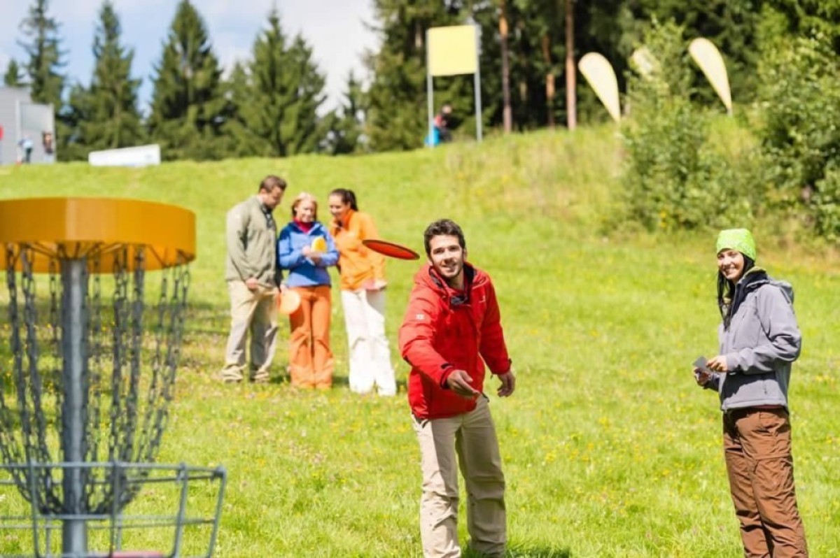 Aktivní ale přitom nenáročná aktivita? To je Frisbee. U výstupní stanice lanovky se můžete veFrisbee parku.Pravidla hry jsou podobný jako na golfu, akorát zde setrefujeterůznými typy diskůdo kovových košů. Park má celkem9 košůa celková délka trasy hřiště je zhruba 1500 metru.Disky si můžete přivést vlastní nebo si je zapůjčit v půjčovně koloběžek uStezky korunami stromů.celý popis aktivityskrýt popis