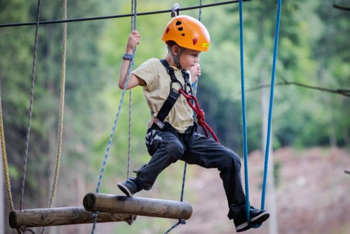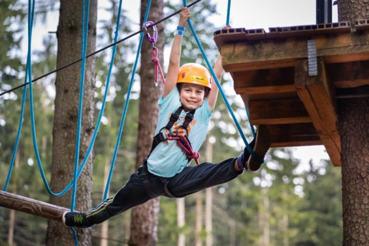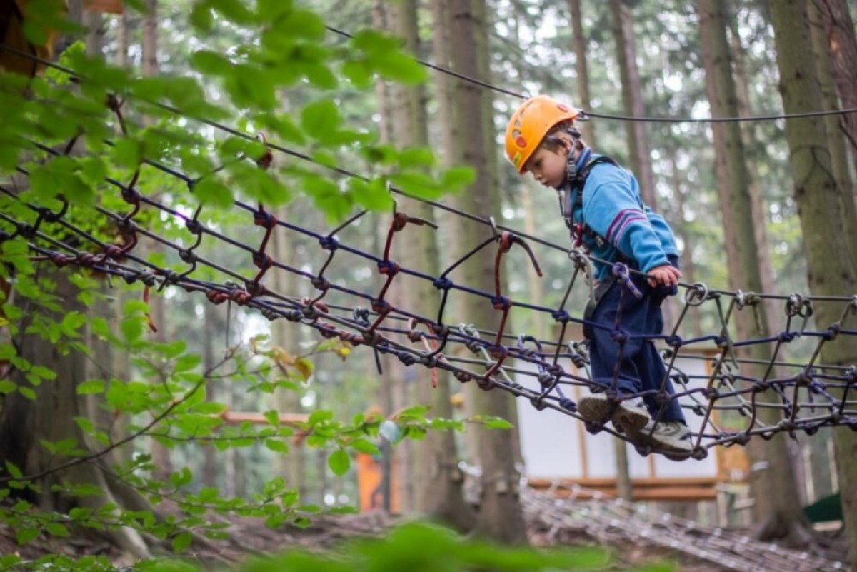 Vydejte sena výletdo největšího lanového parku v ČR v Trojanovicích.Tarzanieje určená široké veřejnosti,dětemi dospělým, jednotlivcům i kolektivům. Při zdolávání trasy lanových překážek prověříte svou fyzickou i psychickou zdatnost.Horský lanový parkpřináší výjimečnou novinku.Nová “Dětská trasa”se speciálním samojistícím systémem umožňuje bezpečné lezení i malým dětem jižod 4 let, resp. od výšky 100 cm. Dětská trasa obsahuje18 překážek zavěšených na stromechve výšce od dvou do čtyř metrů. Děti na trase postupně překonávají nejrůznější lávky,žebříky a sítě, včetně pětimetrové pavoučí sítě. Na závěr trasy překonávají ve speciálníjezdící houpačcevzdálenost třicet metrů.