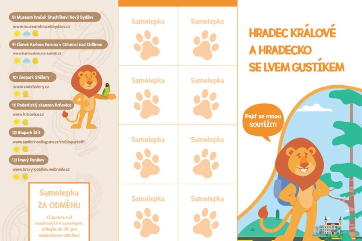 Hradcem Králové vás provede lev Gustík a poradí i výlety do blízkého okolí. Jak na to? V infocentru si vyzvedněte mapu a soutěžní letáček (můžete si je i vytisknout nawww.gustik.cz) a dejte se do objevování.Odměna za nasbírané samolepkyNa jednotlivých místech sbírejte samolepky a až jich budete mít 8, zajděte do infocentra pro odměnu.Naplánujte si rodinný výlet i dovolenouPo celém Česku vyhledávámetipy na ubytování vhodná pro rodiny s dětmiirodinné výlety a aktivity.celý popis aktivityskrýt popis