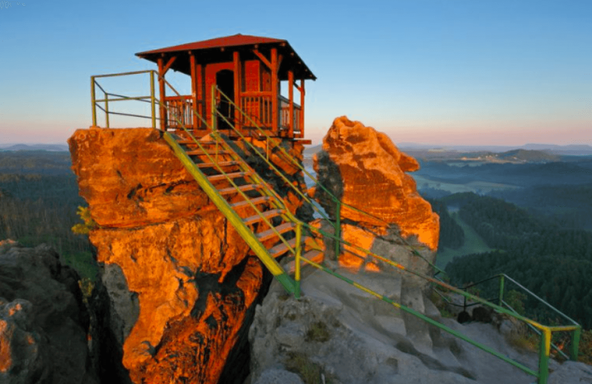 Obec Jetřichovicev západní části Českého Švýcarska obklopujíJetřichovické stěny.Oblast je známá pískovcovými skalními městy i samostatně stojícími skalními věžemi. Mezinejznámější patříRudolfův kámen, Vilemínina stěna a Mariina skála, z jejichž vrcholků se otvírá malebný výhled do okolí.OblastJetřichovických stěnje označována jako nejkrásnější území u nás a můžeme tu vidět pískovcová skalní města, stěny či samostatné skalní věže. Oblast také oplývá mnoha rozmanitými vyhlídkovými skalními útvary.