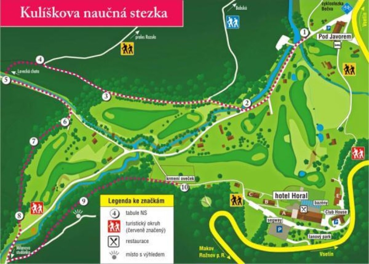 Kulíšek je vzácný druh sovy, se kterou se můžete setkat ve Velkých Karlovicích. Vydejte se s Kulíškem na krátkou procházku, čeká vás 11 zastavení. Na každém z nich se seznámíte s některým zvířetem a dozvíte se, čím se živí i kde bydlí.Trasa měří 2,5 km a zvládnete ji i s kočárkem.Hádanky, úkoly i krmení ovečekNa jednotlivých zastaveních najdete i interaktivní prvky, hádanky a úkoly. Děti si mohou vlézt dozvětšeniny ptačí budky a vyzkoušet si, jaký má kulíšek ze svého obydlí rozhled. Jinde si zaseotestují svoji rovnováhu na kladině. Poslední stanoviště je doplněno oautomat na granule pro krmení ovcí, které obývají zdejší pastviny.Užijte si Beskydy naplnoKulíškova stezka začíná u hotelu Pod Javorem u sjezdovky Horal, jen 30 metrů od cyklostezky Bečva. Poté vede údolím Dynčák podél golfového hřiště, po úbočích lesy i kolem pastvin s ovcemi a končí u hotelu Horal.Poradíme vám,kde se ubytovatikam na výlet.celý popis aktivityskrýt popis