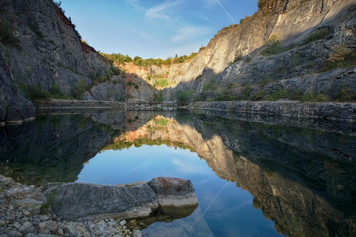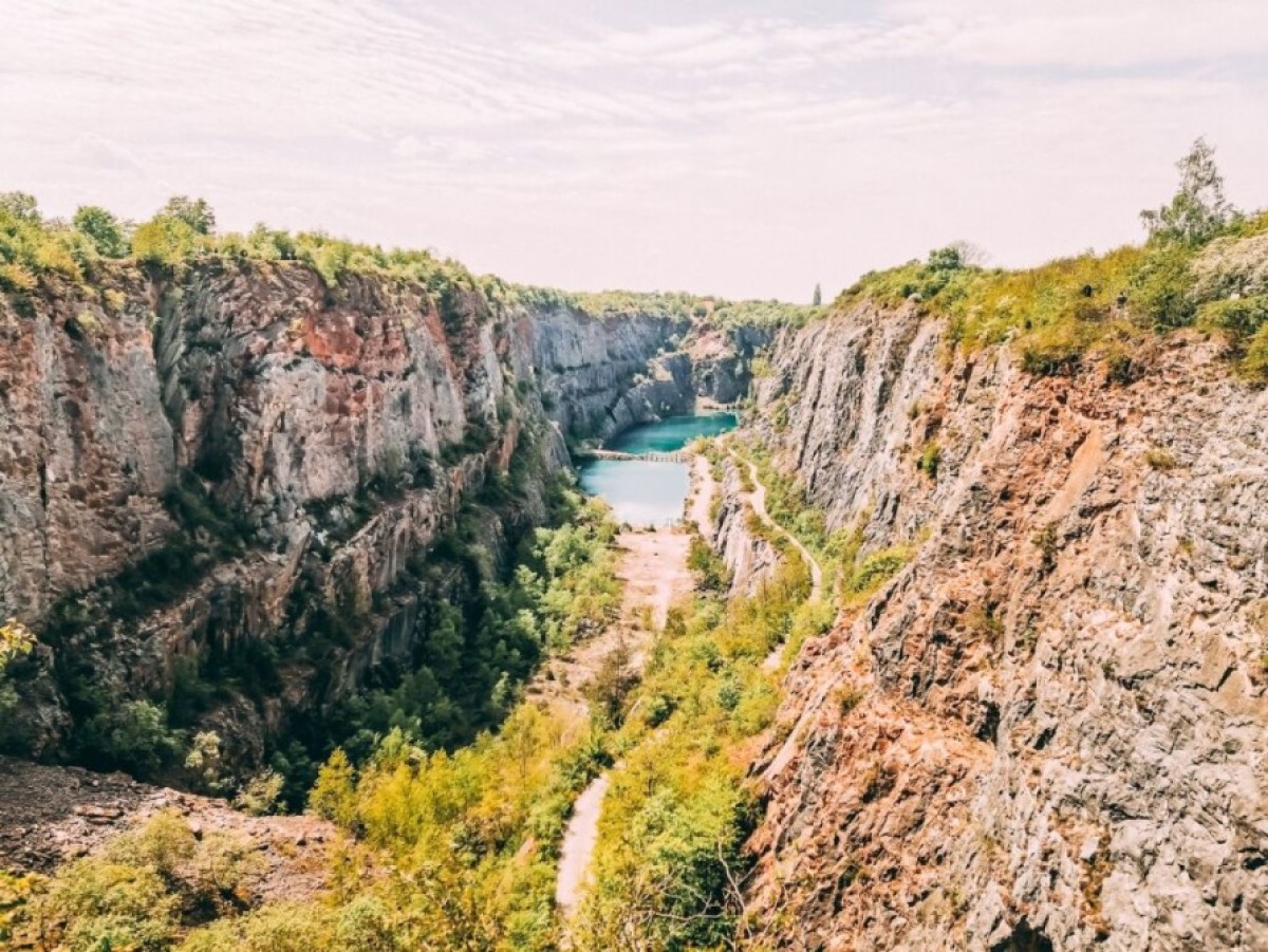 Velká Amerika – český Grand Canyonje vápencový, asi 800 m dlouhý, 200 m široký, až 100 m hlubokýzatopený lom. Na jeho dně se nachází dvě navzájem propojená jezírka s průzračnou vodou.Místo je vyhledávanéfilmovými společnostmi. Byly zde natáčeny scény do filmů Limonádový Joe a Akumulátor.