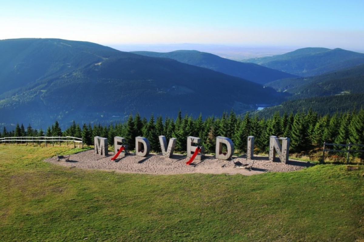 Nejvýše položené dětské hřištěv České republice najdete na Medvědíně v nadmořské výšce 1235 metrů. U horní stanice lanovky stojí obří nápis MEDVĚDÍN, kdekaždé dřevěné písmeno funguje i jako prolézačka. Užijete si tu s dětmi zábavu i dechberoucí výhledy do okolí.Kams dětmi na výlet? Mapujeme celé Česko.celý popis aktivityskrýt popis