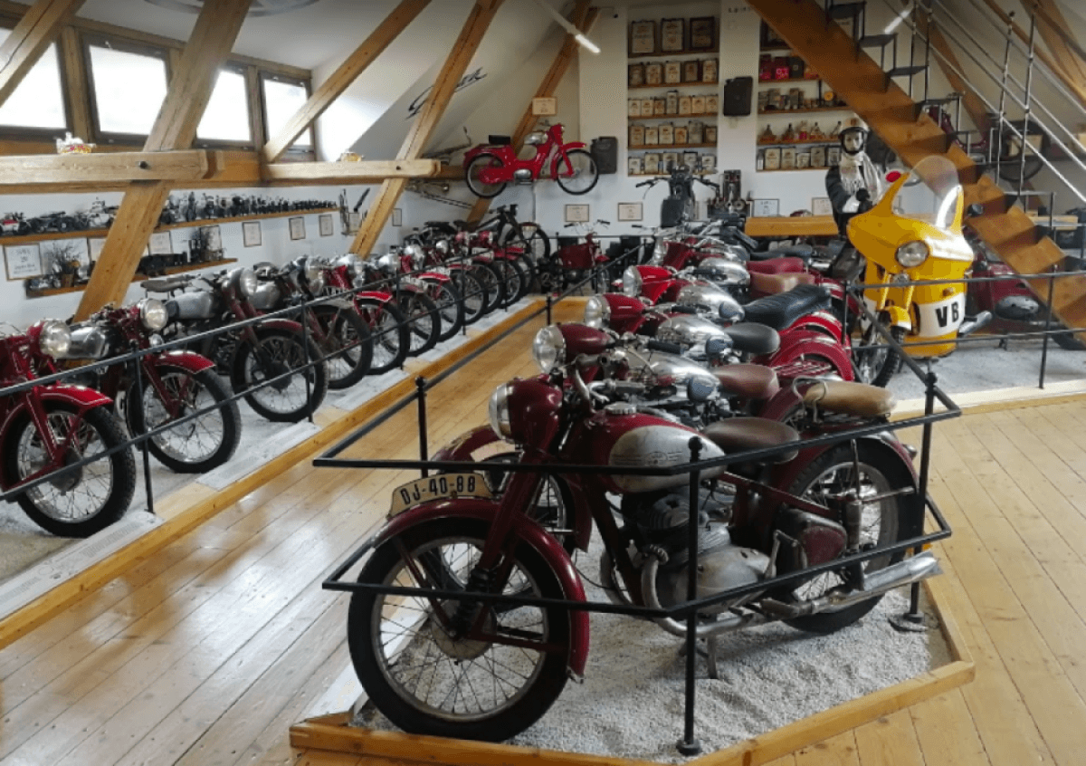 V muzeuse nachází unikátní sbírka 80 historických motocyklů, které se vyráběly v hojném počtu české i světové silnice v30.-70. letech.Naleznete zde kompletní sbírku sériově vyráběných motocyklů zvučných jmen, jako jsou značky JAWA, ČZ, PRAGA, ale i zástupce méně známých značek OGAR, MANET, ACHILLES, ŠÍSTKO či ČECHIE- Böhmerland.celý popis aktivityskrýt popis