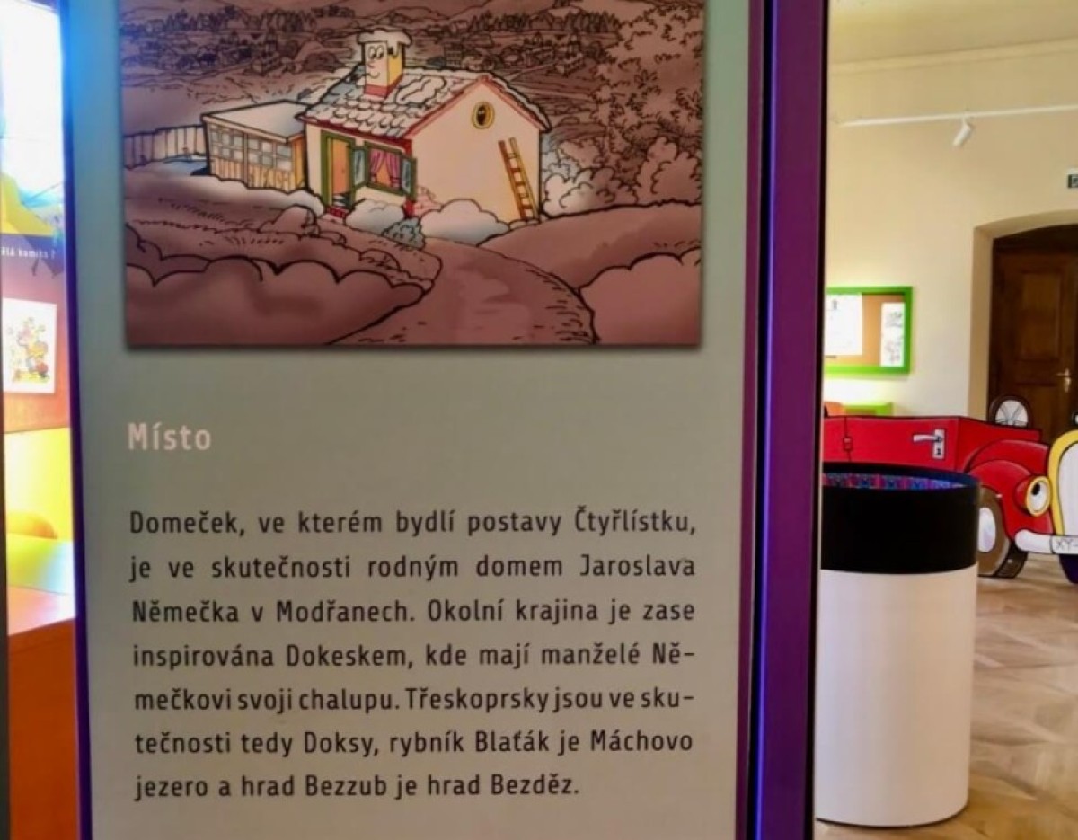 Kdo by neznal legendární Čtyřlístek? Ale tušili jste, že Fifinka, Bobík, Myšpulín a Pinďa mají dokonce své muzeum? Najdete ho přímo na zámku v Třeskoprskách, Nemůžete na mapě takové město najít? Mate pravdu,Třeskoprsky jsou ve skutečnosti Doksy.Za Bobíkem, Myšpulínem, Fifinkou i PinďouSetkáte se tu se všemi postavičkami v nadživotní velikosti, zalistujete starými i novými čísly tohoto léta oblíbeného časopisu a dozvíte se vše o jejich historii. S Bobíkem si zatrénujete u boxovacího pytle a Fifinka ocení vaši pomoc při vaření. Výlet doporučujeme spojit s procházkou kolemMáchova jezera.Naplánujte si dovolenou či výlet ve středních ČecháchMáme pro vástipy na ubytováníiskvělé rodinné výlety.celý popis aktivityskrýt popis