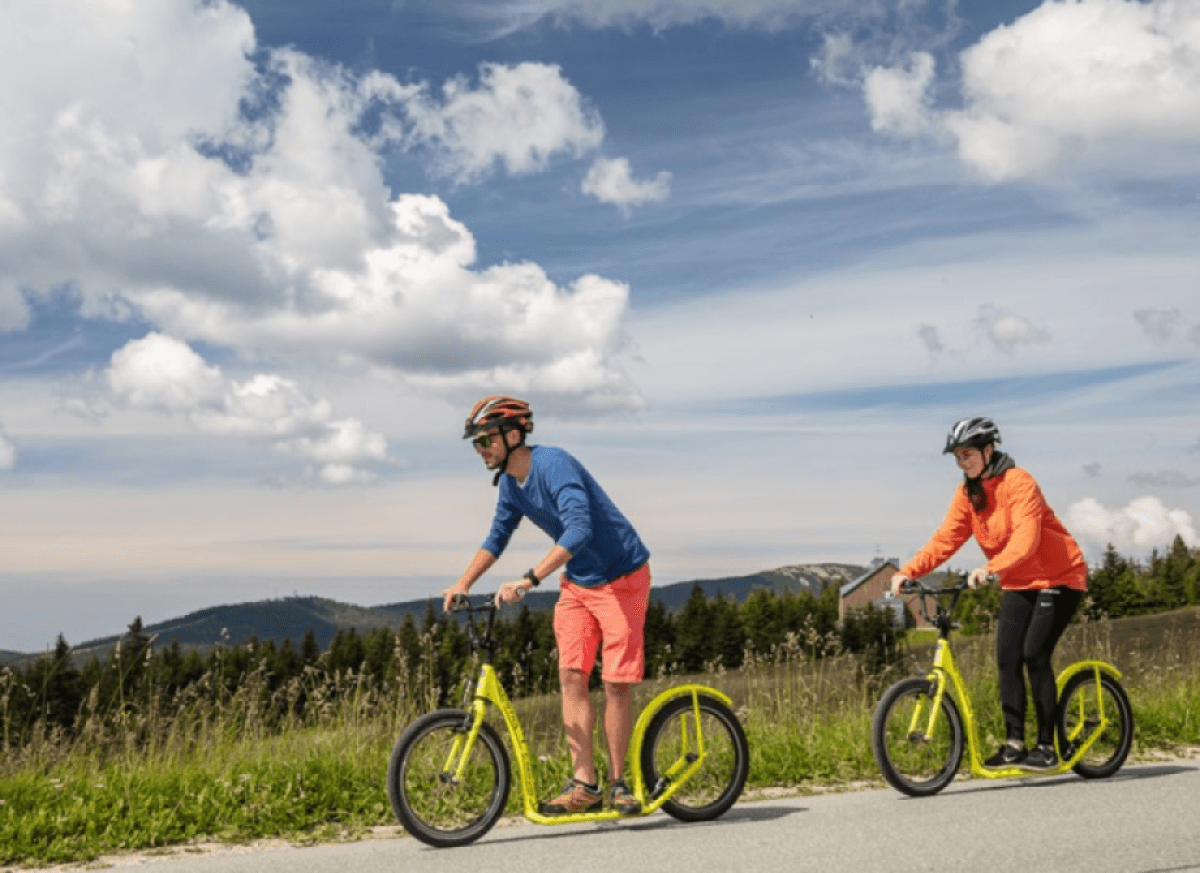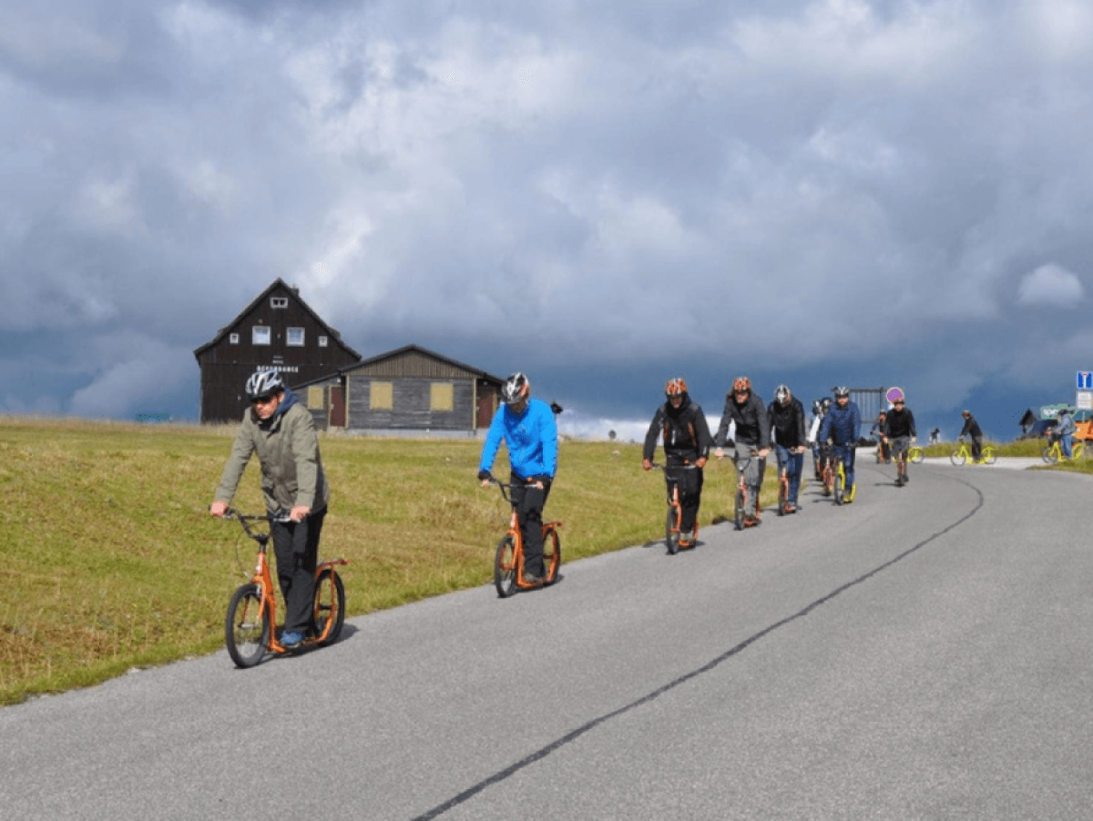 Nechte se vyvézt z centra Špindlerova Mlýna až na Špindlerovu boudu a absolvujte 10 kilometrovou trasu. Dopravit se na trasu můžete i sami, u Erlebachovy boudy si půjčíte koloběžky a po hřebenech se dostanete až do centra města. Trasa je vhodná i pro menší děti, které si to s vámi jistě moc užijí. Koloběžky vám zapůjčí i s helmou, a tak vás opravdu nic nezaskočí.
