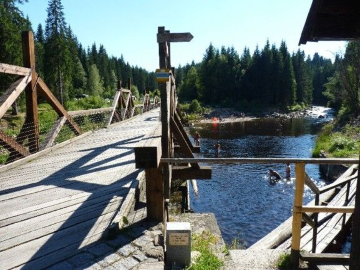 Začátek naučné stezkyVchynicko-tetovský kanál hledejte zhruba na polovině cesty mezi Modravou a Antýglem.Výchozím bodemstezky je obnovenýhradlový most zvaný Rechle.Celou cestu vás budou doprovázet přehlednéinformační tabule.Pojednávají o historii, přírodě i kultuře tohoto kraje včetně technických informací o plavebním kanálu. K odpočinku sloužílavičky a upravené vyhlídky.Tato naučná stezka bude svým tematickým zaměřením bližší spíšstarším dětem. I její délka13,6 kilometrůby mohla rodiny s menšími dětmi odradit. Stezka vede podél řeky, která se dříve využívala pro plavení dřeva.V současné době je tok využíván pro vodní elektrárnu na Čenkově Pile.