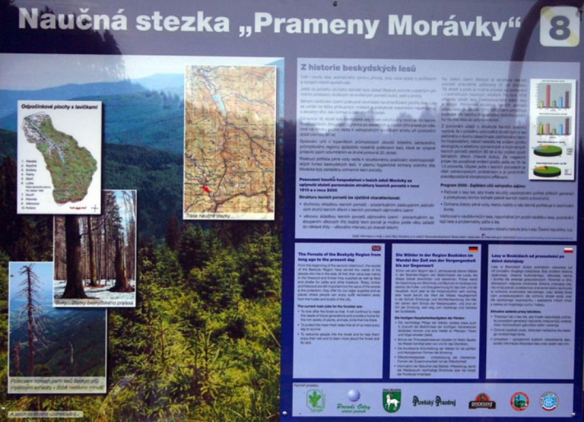 S malými i velkými turisty můžete podniknout výlet po naučné stezce Prameny Morávky. Čeká vás krásná, několikahodinová,procházka beskydskou přírodou. Trasa vede po asfaltové cestě, takže ji zvládnete ise sportovními kočárkynebona kolech. Pohodlně se zde půjde i malým chodcům.Naučná stezka spojuje obec Morávku s pramennou oblastí řeky Morávky nedaleko horské osady Bílý kříž. Trasa začíná na parkovišti Morávka – Lipové a pokračuje po asfaltce až na konečnou autobusu Morávka – Bebek. Dále se budete držet zelené turistické značky směrem na Bílý Kříž. Před ním odbočíte vlevo a vydáte se po zpevněné lesní cestě k prameni Morávky. Celkem vás čekápohodových 14 km, během kterých si odpočinete a načerpáte informace na9 zastaveních.celý popis aktivityskrýt popis