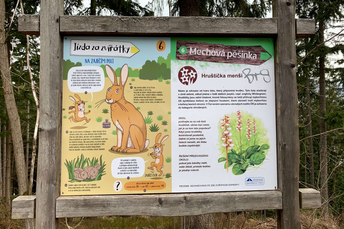 Vydejte se na výlet po stopách zvířátek.Trasa měří necelých 8 kilometrů, ale zvládnou ji i malé děti,celou dobu půjdete z kopce. Cesta je vhodná i pro kočárky, kola a koloběžky, ale záleží samozřejmě na počasí a sněhu.U lanovky si vyzvedněte plánek s úkolyVýlet začne u lanovky ze Špindlerova Mlýna na Přední Planinu,kola i kočárky se přepravují zdarma. Nezapomeňte si vyzvednoutplánek s mapkou a úkoly.Na výlet přibalte i obyčejnou tužku, bude se hodit při sběru stop z jednotlivých stanovišť. U horní stanice lanovky se děti vyřádí nakrásném hřištia pak už se vydejte po stopách zvířat, která v Krkonoších žijí.Setkáte se s liškou, jezevcem, jelenem, srncem, kunou, zajícem a divočákem.Rodinná dovolená v KrkonošíchNaplánujte si svou krkonošskou dovolenou s rodinou. Poradíme vám,kde se ubytovat i kam na výlet.celý popis aktivityskrýt popis
