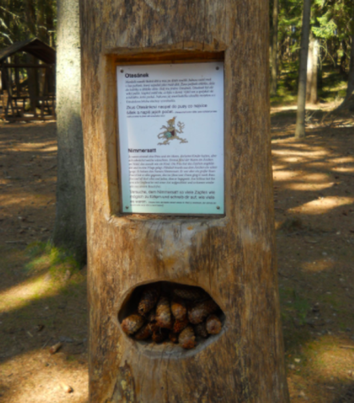 Trasa má celkemtři stupně obtížnosti- bronzová stezka pro mrňata a skřítky (1,8 km, 4 stanoviště), stříbrná stezka pro zdatné poutníky (2,5 km, 6 stanovišť) a zlatá stezka pro válečníky a princezny bojovnice (4 km, 8 stanovišť).Zahrajte si na Jeníčka, Otesánka nebo ZlatovláskuLeze se na strom, aby bylo vidětsvětýlko perníkové chaloupky, krmí seOtesáneknebo se plní tři prolézacíúkoly pro Zlatovlásku. U každého úkolu je i stručně převyprávěná pohádka, které se týká. Mezi jednotlivými stanovišti je asi půl kilometru, takže děti toho ujdou víc, že si samy myslí.Rodinné výlety po celém ČeskuNaplánujte si svůj příští výlet s dětmi. V naší databázi najdete užpřes 1600 tipů na výlety a aktivity.celý popis aktivityskrýt popis
