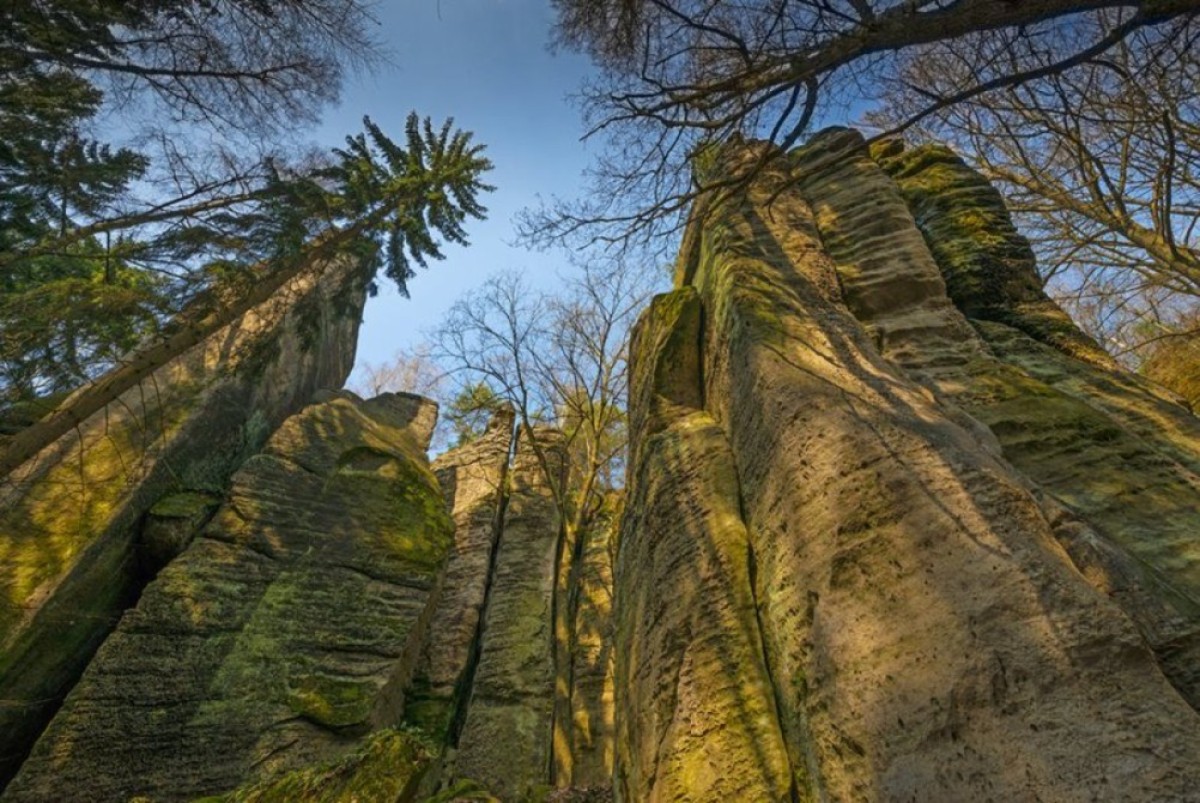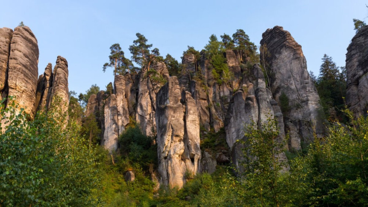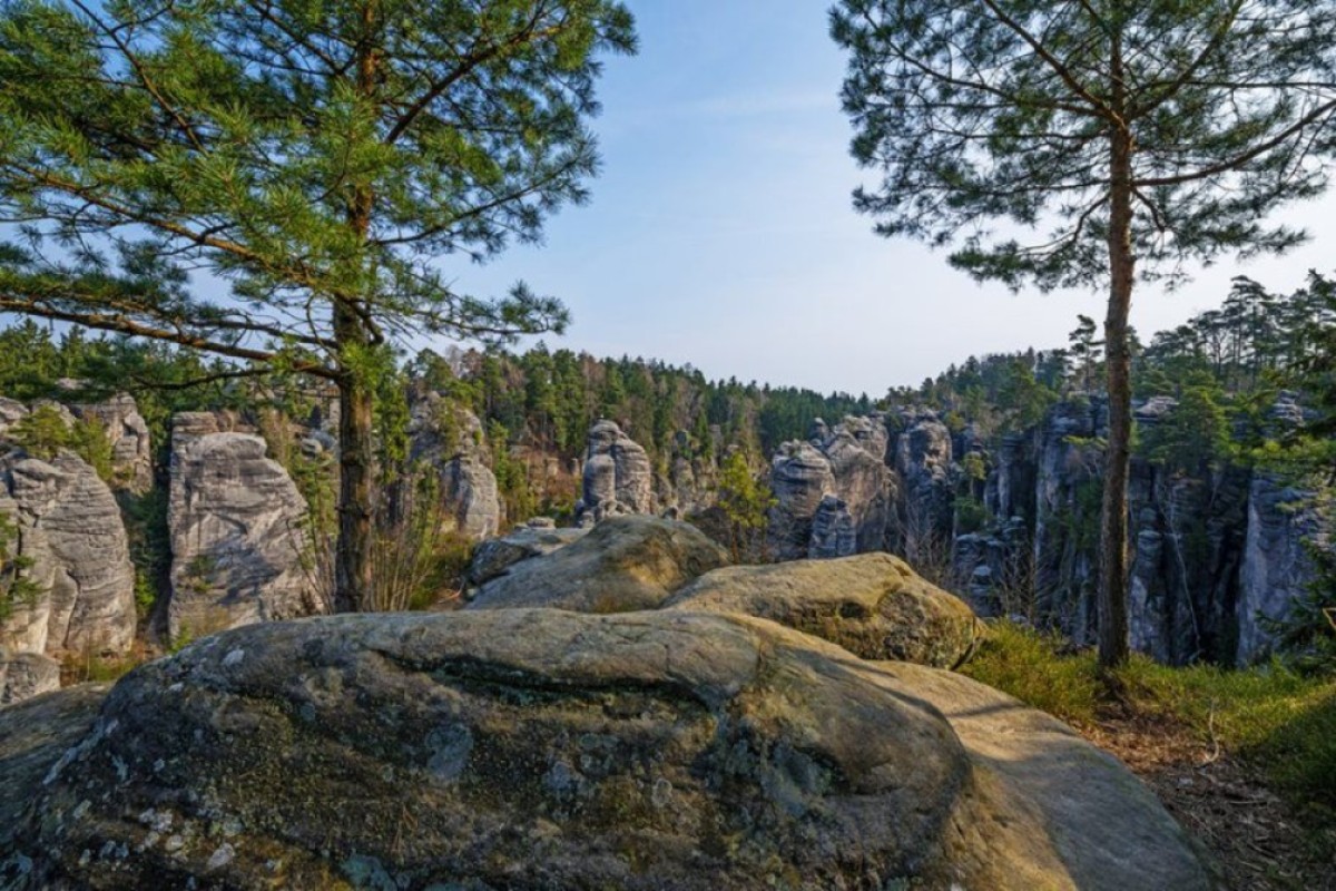 Nejznámější částí Českého ráje jsou bezpochybyPrachovské skály,ráj pro horolezce. Toto skalní město leží necelých10 kmseverozápadně odměsta Jičín.Silně rozčleněnáplošinavznikla z usazenin pískovců, slínovců a opuk vdruhohorách.Skalní útvaryPrachovských skaldosahujívýšky až 40 metrů.Hustá síť turistických značekvás provede roklemi, stržemi, úžlabinami, po vršcích pískovcových skal s vyhlídkami a kouzelnými zákoutími. Mezi nejnavštěvovanější místa patříVyhlídka Českého ráje, Americká sluj, vyhlídka prof. Hekena čiCísařská chodba.