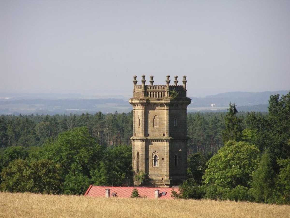 Třicetimetrová kamenná věž s bohatě zdobeným ochozem z roku 1840, byla v roce1873zpřístupněna jakorozhledna.Nachází se v areáluzámku Slavín v Tupadlech.Rozhledna byla pro svůjnevšední výhledz výšky 30 metrů hojně navštěvována až do 2. světové války.V současnosti slouží objekt zámku a okolí jakoBuddhistické meditační centrum Samadhi.