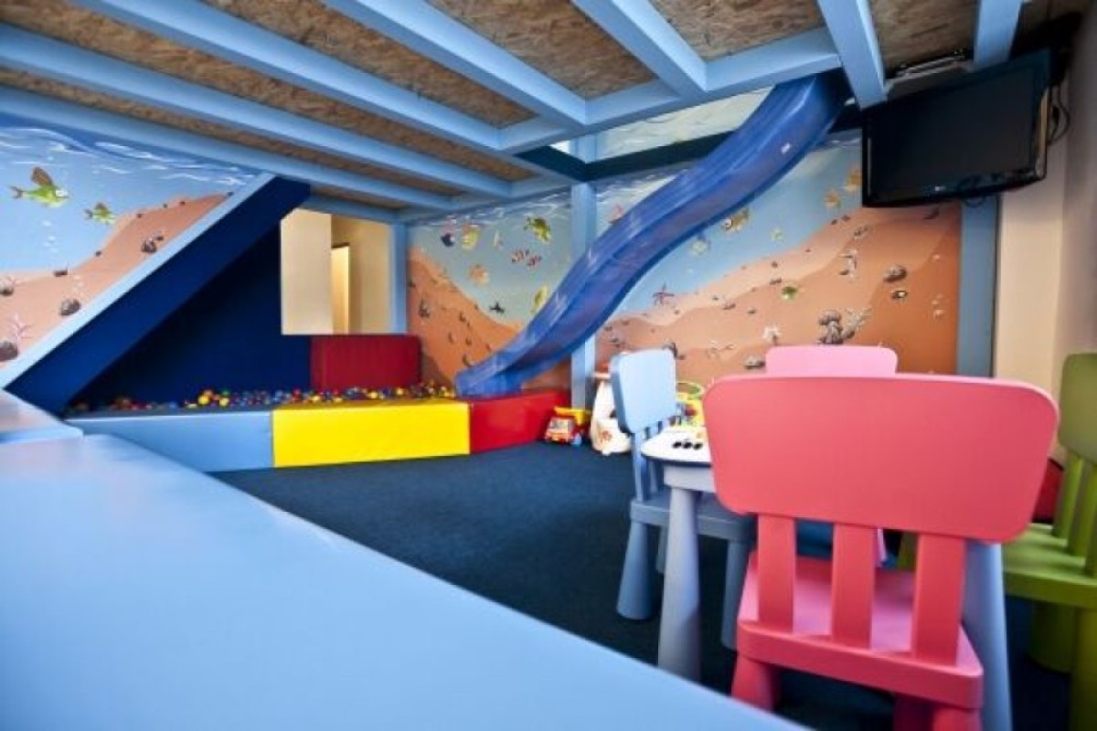 SAMPALEROje kavárnas hernou(dětskými koutky). Samozřejmostí je Wi-Fi, přebalovací pult, mikrovlná trouba (pro ohřátí příkrmů pro děti) a vysoké krmící židle.Dětský koutek je patrový, se skluzavkou do polstrovaného bazénku sbalónky. Dětská kuchyňka a řada interaktivních, dřevěných a plyšových hraček jsou nové, pravidelně kontrolované a desinfikované. Pro větší děti tu jsou prolézačky.