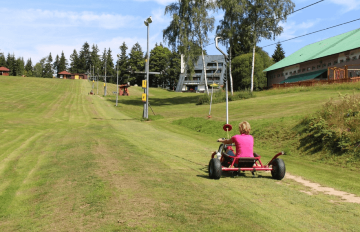 Vydejte se s dětmi do Krkonoš jak v zimě tak i v létě. Areál nabízílehkou sjezdovku, ale pouze pro lyžaře, nikoliv pro snowboardisty. Je určena především prozačátečníky a děti,které se učí jezdit. Díky umělému osvětlení je možné provozovatvečerní lyžování.Pro hladové je zde připraveno občerstvení.Pro rodiny s velmi malými dětmi a úplnými začátečníky bude jistě zajímat možnost přijít k vleku shora, kde jeminiparkskobercovýmjezdícímpásem. Pokud se děti naučí na koberci, přechází vlyžařské školičcena lano, které je na lyžích vytáhne a pak končí ti zdatní za pár hodin u pomy.Vyrazte do areálu i vletních měsících, kdy setravnatálouka mění vdřevěné hřištěse spoustou dřevěných i nafukovacích atrakcí a najdete tu takébobovou dráhuaopičí park, který je opět hned u baru s restaurací, odkud na své děti velmi dobře vidíte. Jeden den vám tady nestačí, tak si nezapomeňte rezervovatubytování v Krkonoších, kde zažijete nespočet aktivit pro malé i velké dobrodruhy.celý popis aktivityskrýt popis