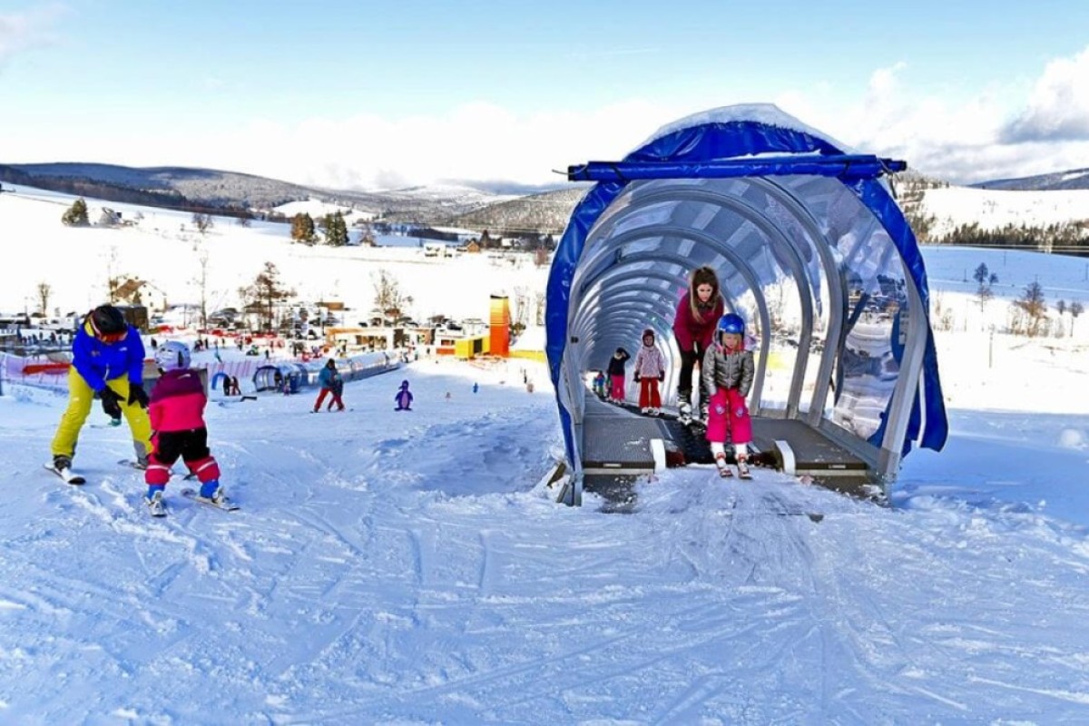 Ve skiareálu Králičák na úpatí Kralického Sněžníku budou spokojeni zkušení lyžaři i úplní začátečníci. Ze Stříbrnic vám nahoru vyvezemoderní rychlá šestisedačková lanovka. Je krytá a vyhřívaná, takže i za mrazivých dní bude cesta opravdu příjemná. Zkušení se vydají dolů poprudké černé sjezdovce, ostatní mohou volitpohodovější červenou sjezdovku. Ve skiareálu najdete imírné modré sjezdovkya zónu pro děti.Perfektní pro malé lyžařeVe Funparku na děti čekajídva pojízdné zastřešené pásy, barevný slalom i snowtubingový kolotoč. Využít můžete služeblyžařské školya k dispozici je takémoderní zázemí a půjčovna vybavení. U hodní stanice lanovkyvystoupejte na rozhledua užijte si nádherný pohled na okolní zasněžené kopce.S dětmi do JeseníkůPoradíme vám,která ubytování jsou vhodná pro rodiny s dětmiikam se vydat na výlet, když si zrovna nebudete užívat sjezdovek.celý popis aktivityskrýt popis