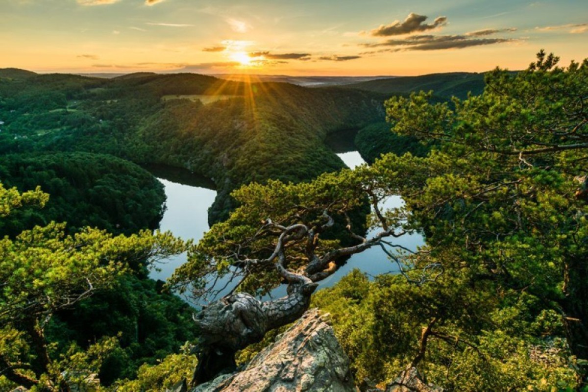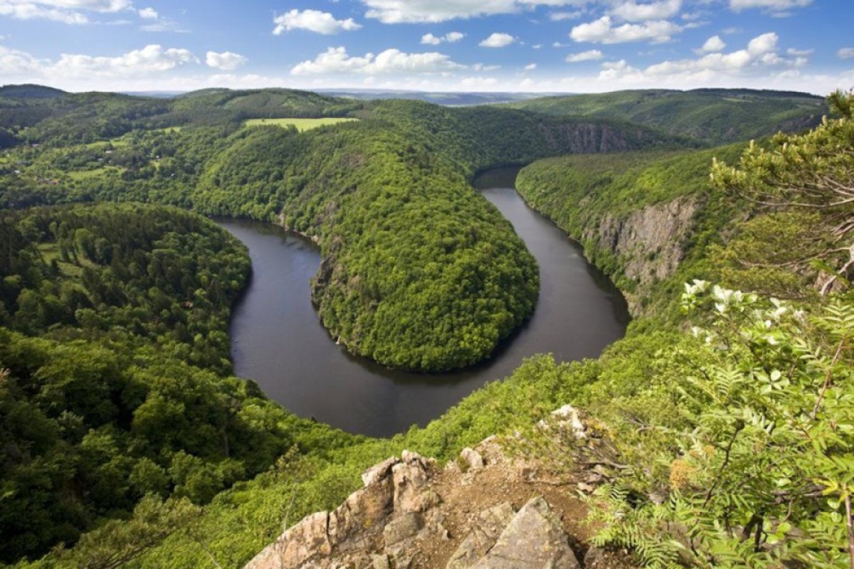 Vyhlídka Májse nachází nedaleko obce Teletín. Řeka zde protéká hlubokým skalnatým kaňonem, stáčí se do tvaru podkovy a vytváří tak fascinující přírodní scenérii.Vyhlídkase nachází na vysoké skále, přímo nad bývalýmiSvatojánskými proudy. Vyhlídka Máj je celoročněvolně přístupná po žluté turistické stezce z obce Teletín.