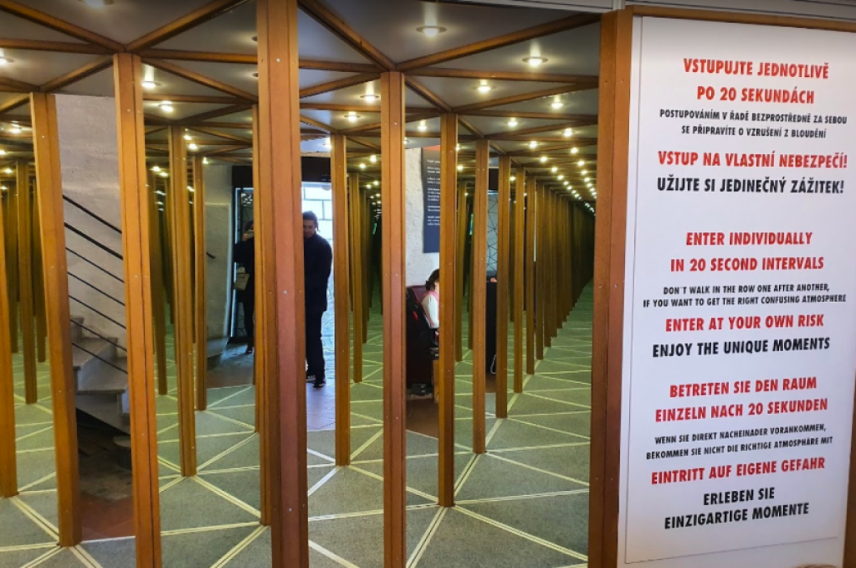 Pokud jste v Českém Krumlově a zrovna máte špatné počasí. Tak zavítejte s dětmi doZrcadlového labyrintu. Najdete ho v centru v Široké ulici. Labyrint se rozkládá ve dvou podlažích domu. Zrcadlová síň je navržena tak, že vytváří efekt nekonečných chodeb a optických klamů. Procházející nepozná, která cesta je skutečná a která je jen odraz v některém ze zrcadel. Kočárek můžete zaparkovat u pokladny a projít si to v klidu s dětmi.V horním podlaží je dalšíkřišťálové bludiště, které je menší a je sestaveno z čirých skel. Na závěr si nejvíce užijí dětísíň smíchu, kde nechybí oblíbená prohnutá zrcadlarůzně deformující postavu.