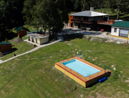 Ecokemp v Brdských hřebenech nabízí netradiční ubytování v přestavěných lodních kontejnerech s celkovou kapacitou 12 lůžek. Pokoje mají velké prosklené stěny, které umožňují výhled do přírody, a vytápění zajišťují olejové radiátory. Společn...